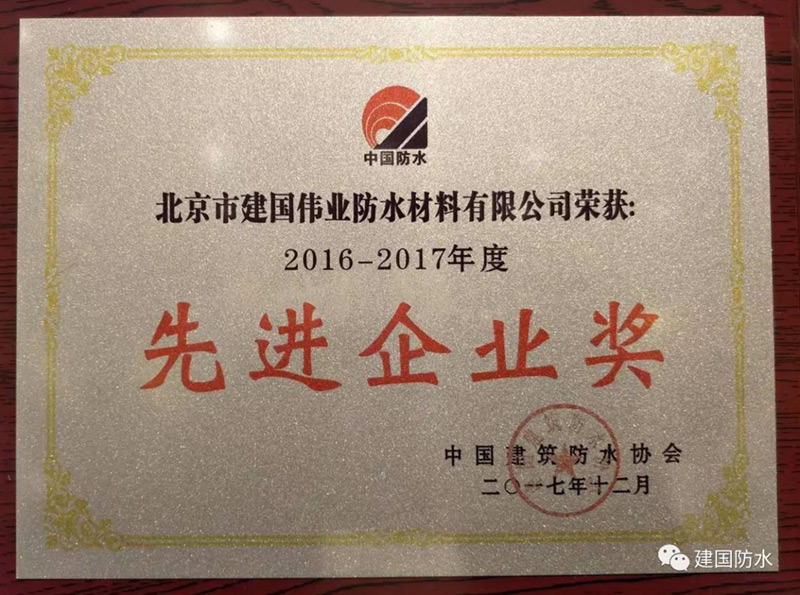 建國偉業(yè)集團董事長李勇先生帶隊參加本次會議。會議中建國偉業(yè)集團憑借自身實力,榮獲“2016-2017年建筑防水行業(yè)先進企業(yè)”稱號。